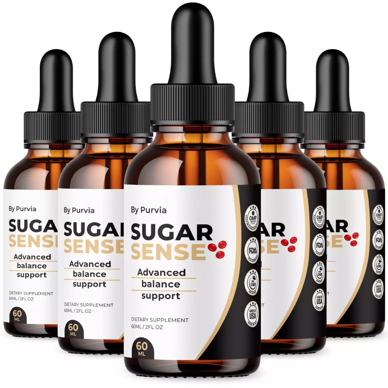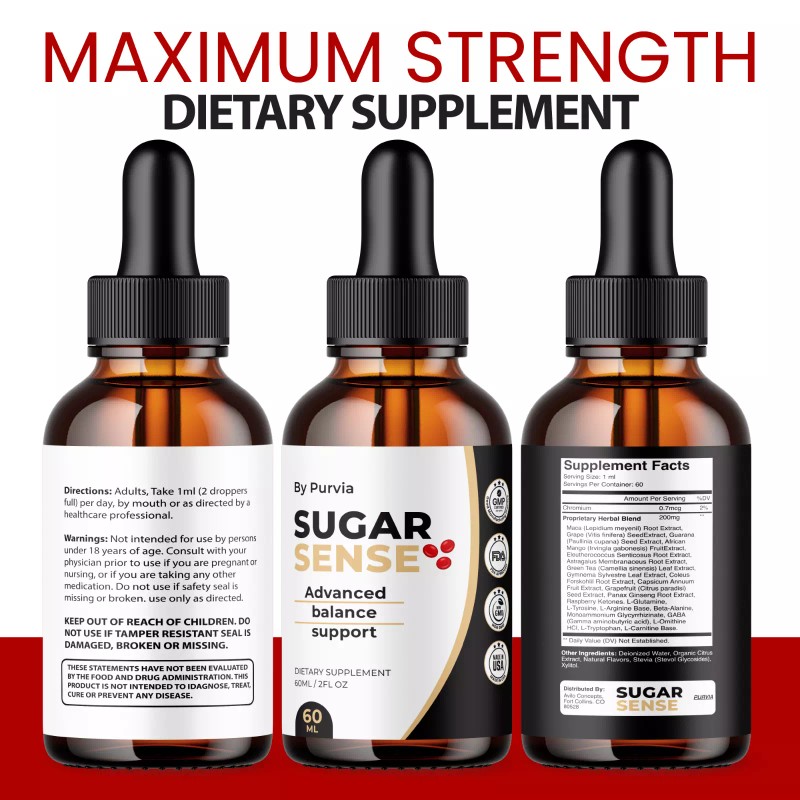 Purvia Sugar Sense Drops Maximum Overall Wellness Health Support Made in USA (5 Pack)