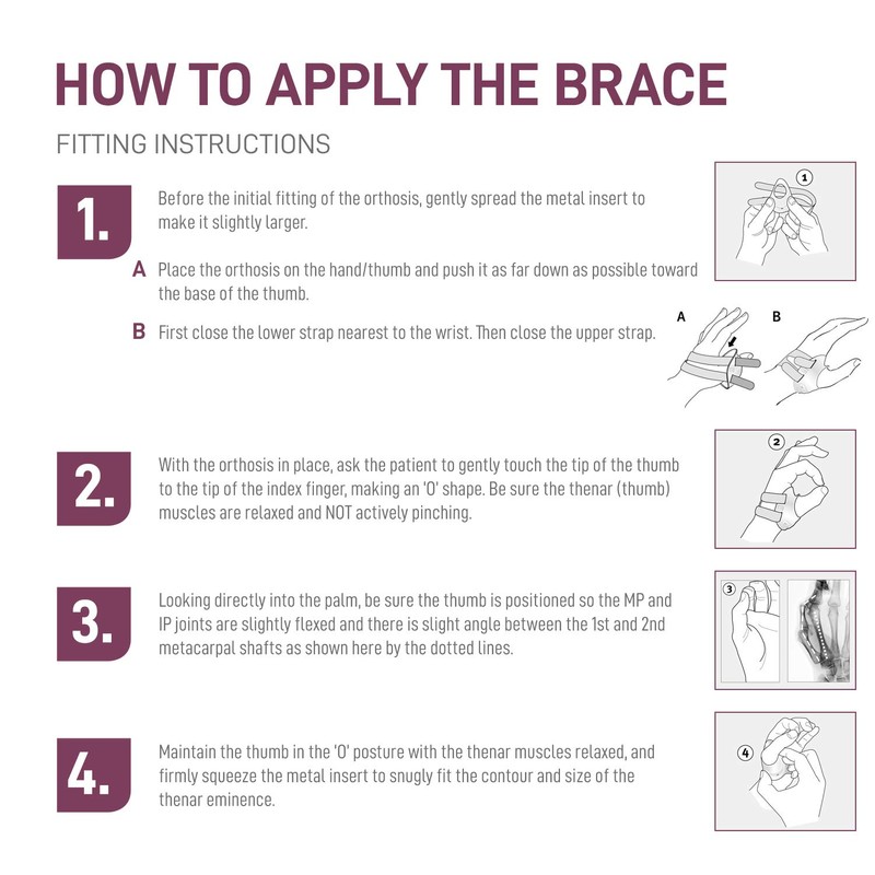- Stability: the thumb bandage stabilises the CMC joint. Pain that occur with rhizarthrosis, osteoarthritis, tendonitis, but also for strains, sprains or bruises can be reduced