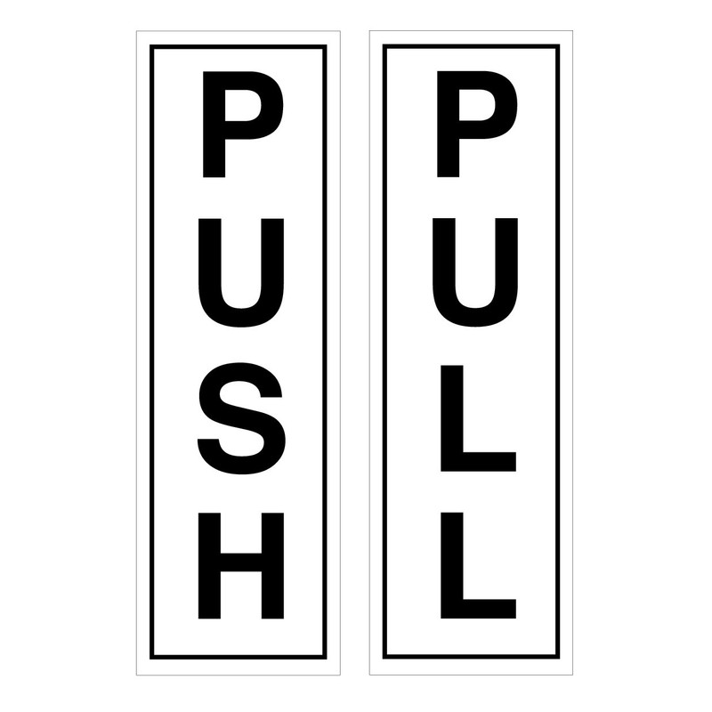 - Hi and welcome to this sale for 2 x PUSH & PULL Black and White Door Stickers. Each sticker measures 190mm x 60mm.