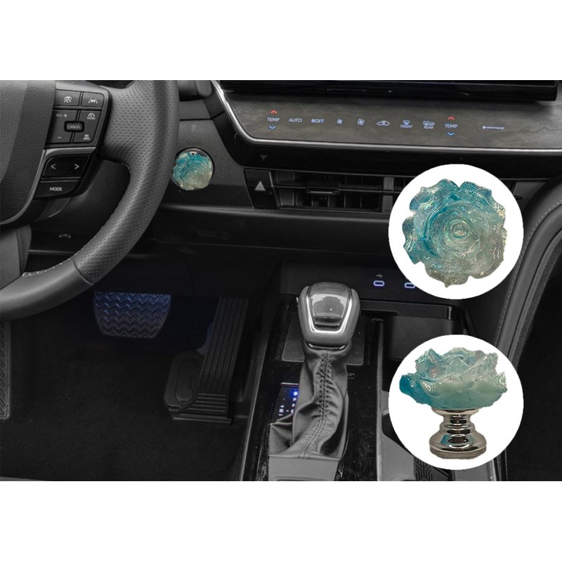 Push to Start Button Cover,Engine Start/Stop Resin Flower Starter Cover,Pink Car Accessories,Car Decor for Women,It Shines Brightly Under Strong Light. (Blue)