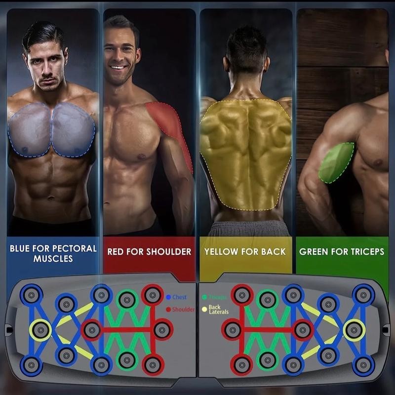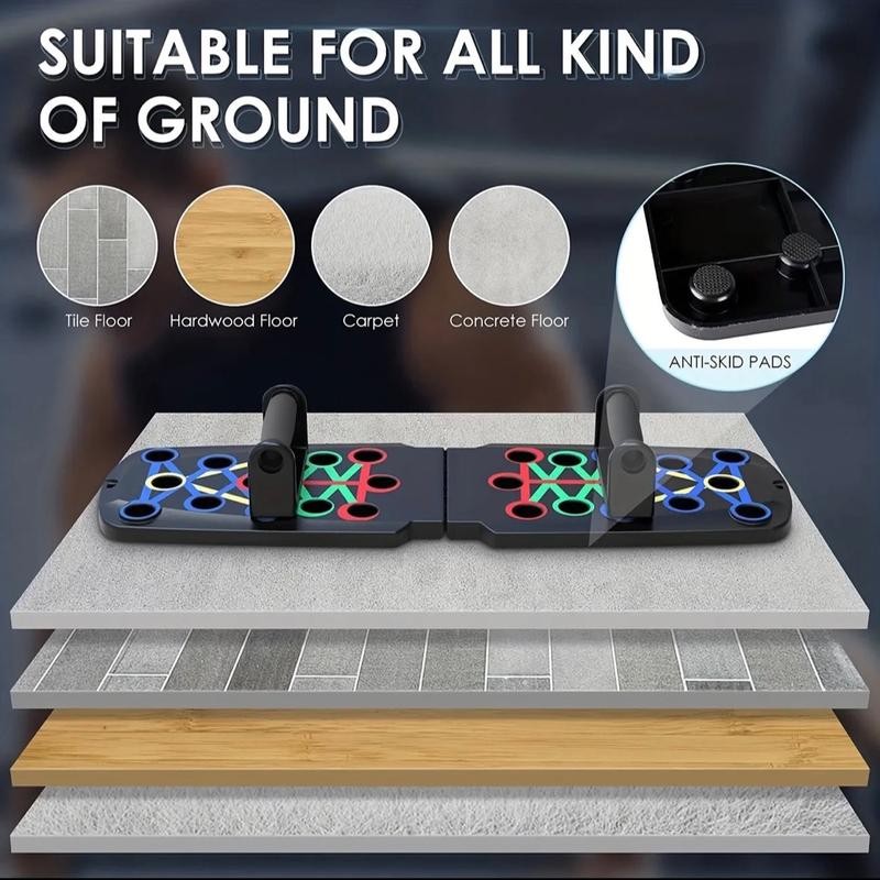 Hey a workout in on the go or when you are traveling with this push up variation board. Different grips target different muscle groups which allows you to target a wide variety of muscles. The board has a folding feature so it can be taken on the go.