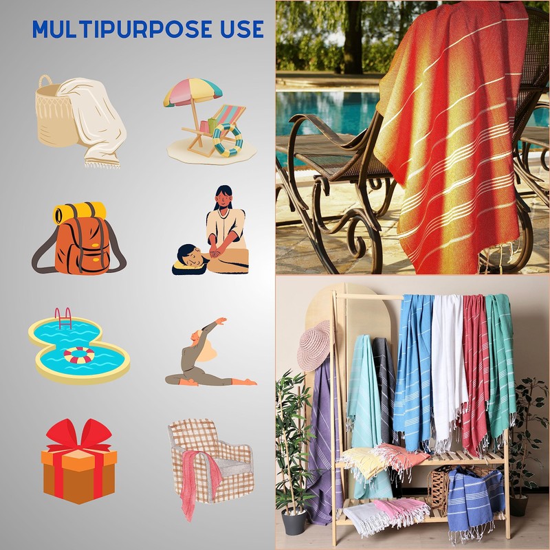 Multi-Purpose Use: You can use it at the beach, pool, spa and many other places.This unique beach towel will be indispensable for your holiday with its quality and useful features. In this way, experience both comfort and elegance at the same time!