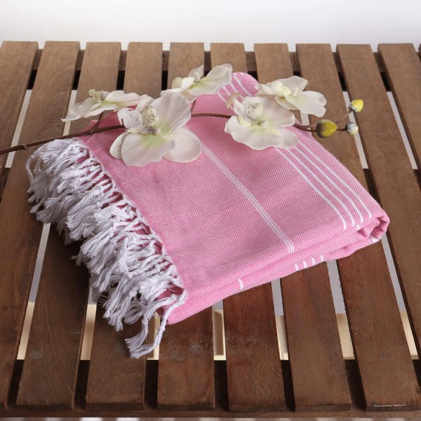PÜSKÜL - Turkish Beach Towel Large Size Sand-Free, 100% Cotton for Swimming and Pool, Extra Soft, 39X70 Inches for Holiday, 1 Piece (Pink)