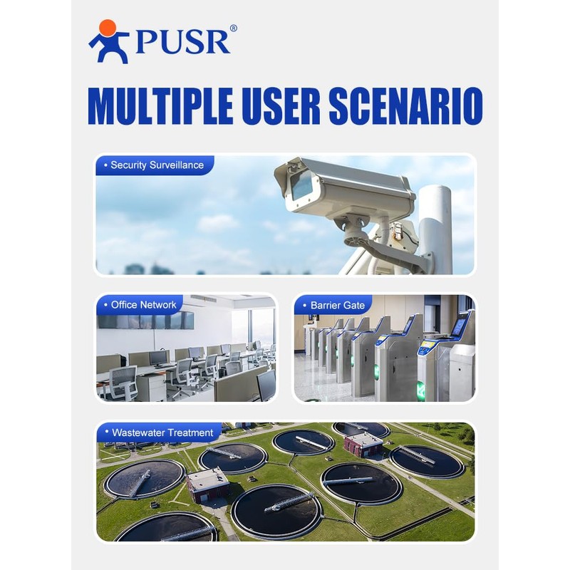 - The product supports desktop, wall and DIN rail installations and is suitable for small and medium-sized offices, home and quasi-industrial applications.
