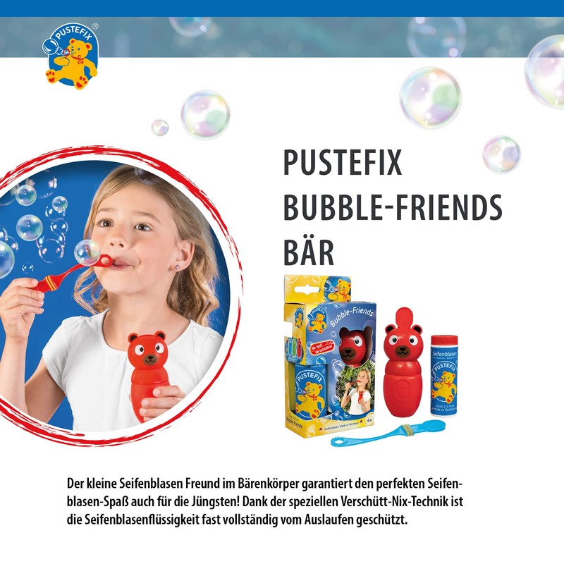- Easy to use: make bubbles from soap yourself? Not necessary thanks to the practically bottled Pustefix soapy water. Simply twist on and without mixing fix and you're ready to blow on.