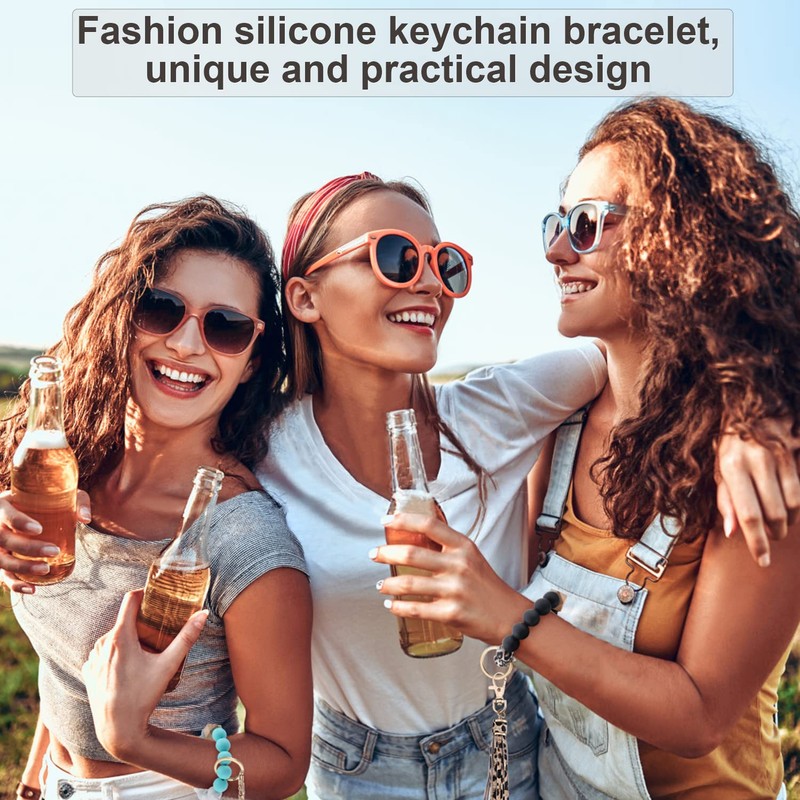 - High quality key rings for keychainsMade of high quality and durable food grade silicone material, two high quality elastic cord connection, leather tassel, gold plated stainless steel metal key ring, not easy to fall off, sturdy and durable. Silicone key ring bracelet has a soft texture, comfortable to wear, suitable for most women's wrists.
