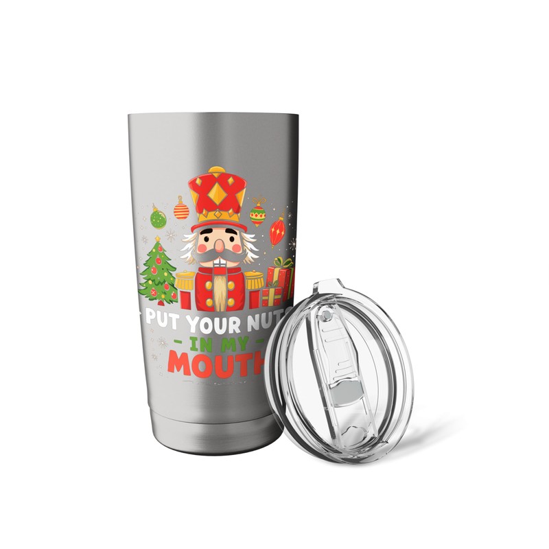 Put Your Nuts in my Mouth Nutcracker Christmas Party Humor Stainless Steel Insulated Tumbler