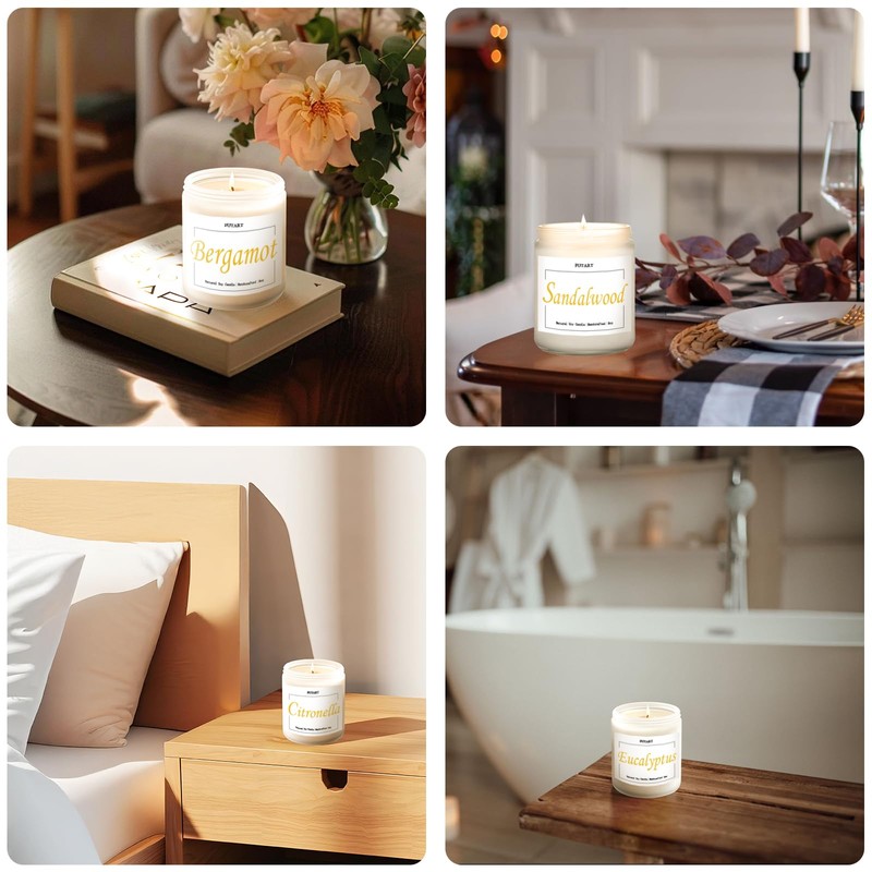 - 【Long Lasting & Even Burn】Putart's soy candles feature lead-free cotton wicks for a stable, even burn that lasts up to 50 hours without emitting black smoke. These long-lasting jar candles provide a delightful, enduring fragrance, perfect for homes, offices, bedrooms, or bathrooms. Whether for work, bedtime rituals, yoga, meditation, spa sessions, or baths, our candle creates an ideal atmosphere and delivers an immersive aromatic experience.