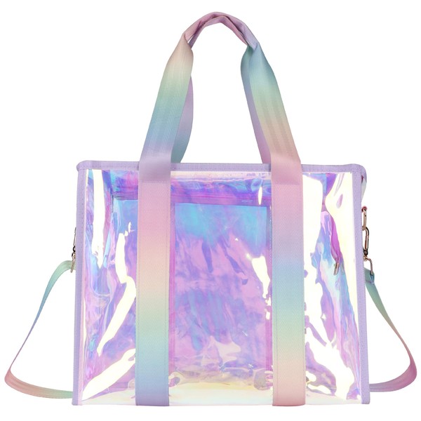 PuTian Large Iridescent Tote Bag for Women with Zipper | Sandproof Waterproof Beach Bag Tip-Proof Clear Shoulder Bag for Pool Travel Gym Boat Crossbody Handbag