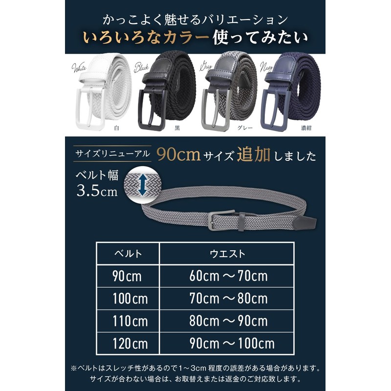 - [Variations] Available in 4 easy-to-use colors (white, black, gray, dark navy) Size: Total length 39.4 inches (100 cm) (waist 24.6 - 29.5 inches (62.5 - 75.0 cm)), 43.3 inches (110 cm) (75.0 - 87.5 cm)