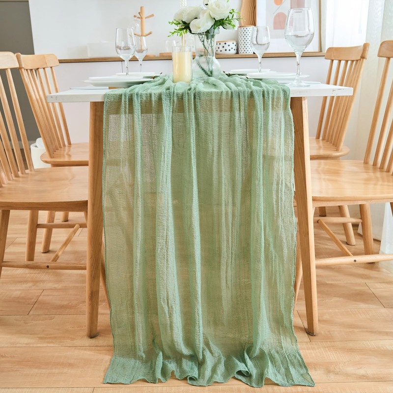 - 【Soft and Elegant Look】Crafted from quality, soft cheesecloth fabric and had carefully sewn edges and natural drape, our sage green cheesecloth table runner can create a graceful effect, adding an element of elegance to any occasion.
