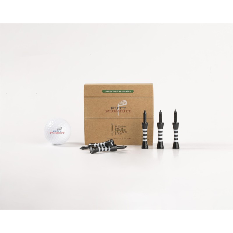 Putt Pursuit 6cm/60mm Black Castle Golf Tees (30 Pack) - Premium Bamboo Material - Sturdy, Biodegradable & Sustainable - Precision Putting for Reduced Friction - Golf Accessory for Teeing Up on Green