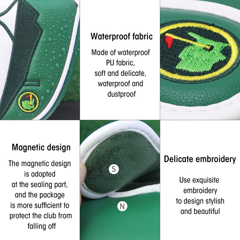 Putter Cover, Waterproof PU Fabric Green Embroidered Cue Cover with Thickened Plush Semicircle Putter Cover