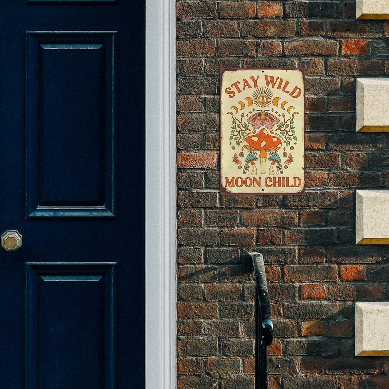 - Perfect Size: 8 x 12 inches stay wild moon child sign. Rounded corner design with hippie room decor to ensure safe handle. Our retro vintage metal tin sign can be used indoors and outdoors for a long time