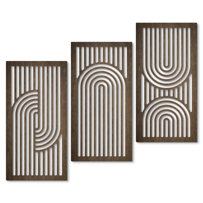 • Set of three wooden panels featuring symmetrical arched line patterns for a modern visual effect