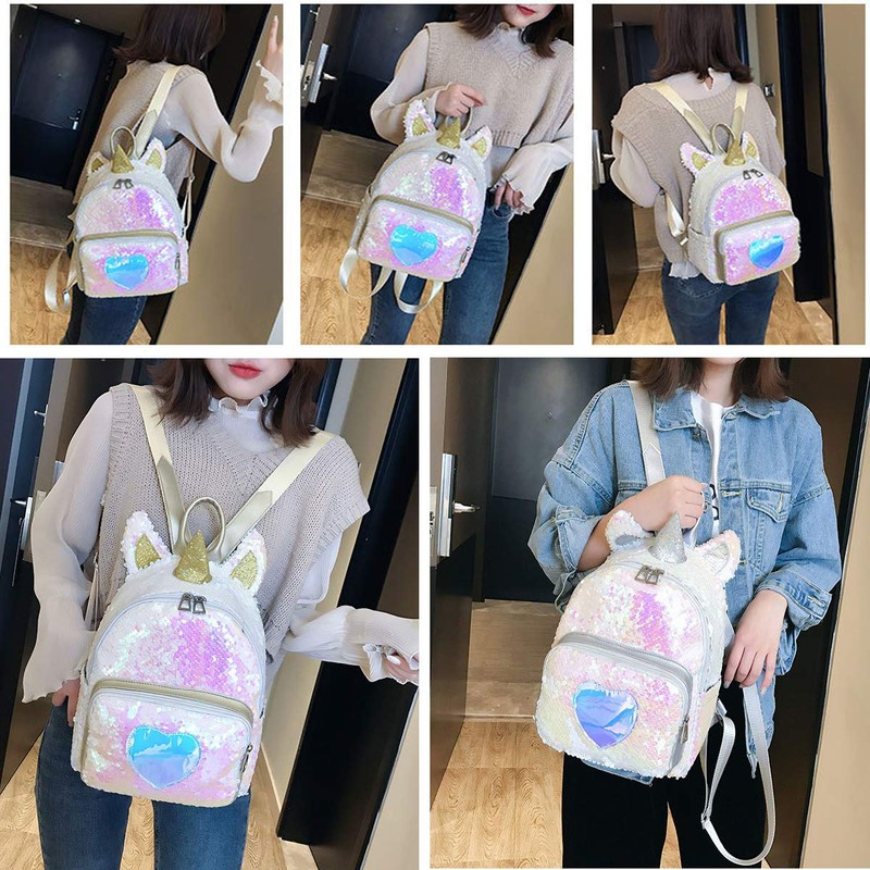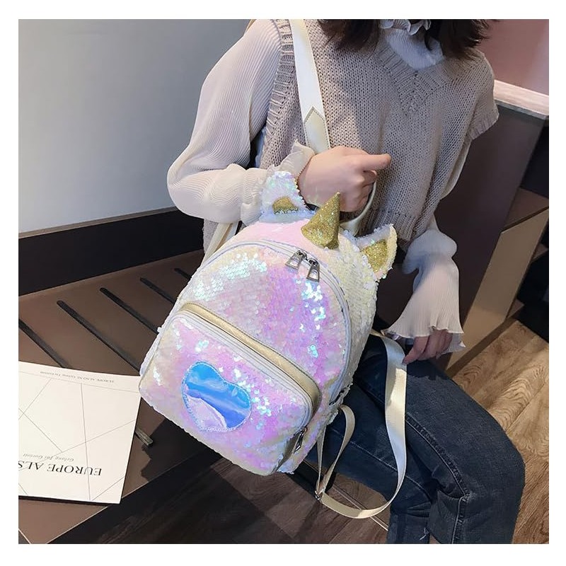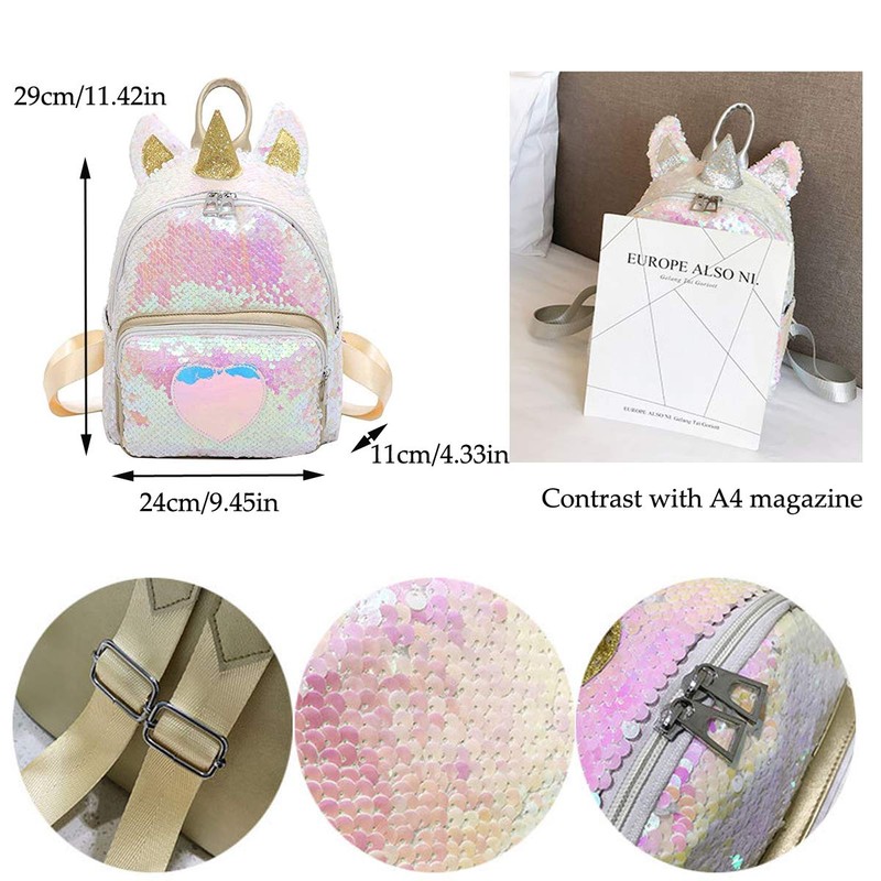 - Unique and Playful: Stand out from the crowd with this one-of-a-kind backpack that combines trendy sequin elements with a touch of enchantment, making it a favorite for unicorn lovers and fashion-forward individuals. Size: 24*11*29cm/9.45*4.33*11.42in(L*W*H). Structure: 1* main pocket, 1* front zippered pocket,2*side pockets,1*inside open pocket Portable size for work, school, travel, shopping, dating, party, etc.