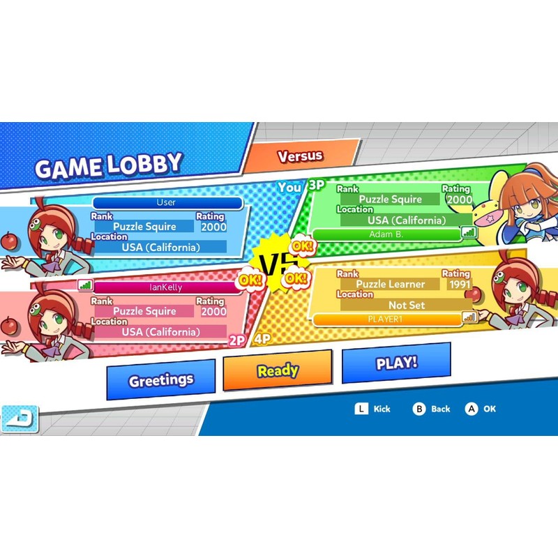 - Compete against three players in Tetris, Puyo Puyo or the new Fusion mode and be the best