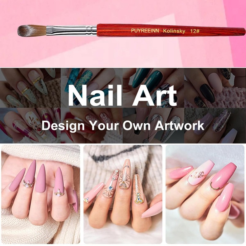 PUYREEINN Acrylic Nail Brush with Kolinsky Hair, Red Wooden Handle and Sable Hair Brush, Gel Brush for Acrylic Power and Nail Extension #8,10,12,14,16 (#10)