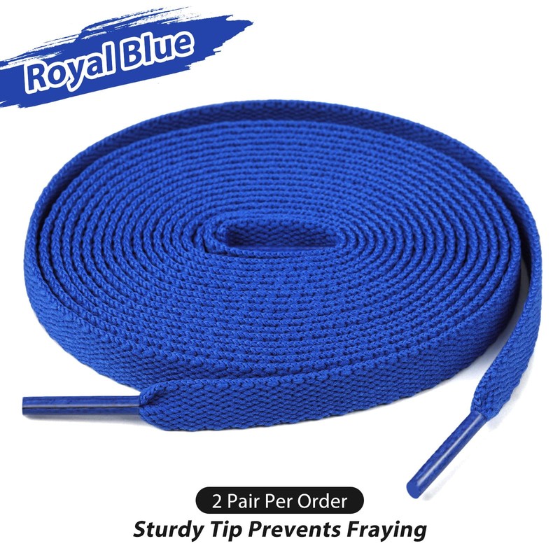 Puzeam Upgrade Tight Weave Flat Shoelaces 16 Colors 5/16" Wide Shoe Laces for Sneakers-Royal Blue-140