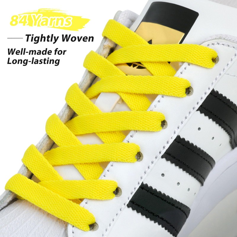 Puzeam Upgrade Tight Weave Flat Shoelaces 16 Colors 5/16" Wide Shoe Laces for Sneakers-Yellow-120