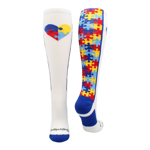 Puzzle Heart Autism Awareness OTC Socks (White/Royal, Large)