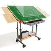 This puzzle table is designed to fit your needs and preferences. You can adjust the height and angle of the table to suit your posture and vision. You can also move the table easily with the wheels and lock it in place when you find the perfect spot. It also comes with a clear mat that protects your puzzle pieces from sliding and falling. when you are not working on it.
