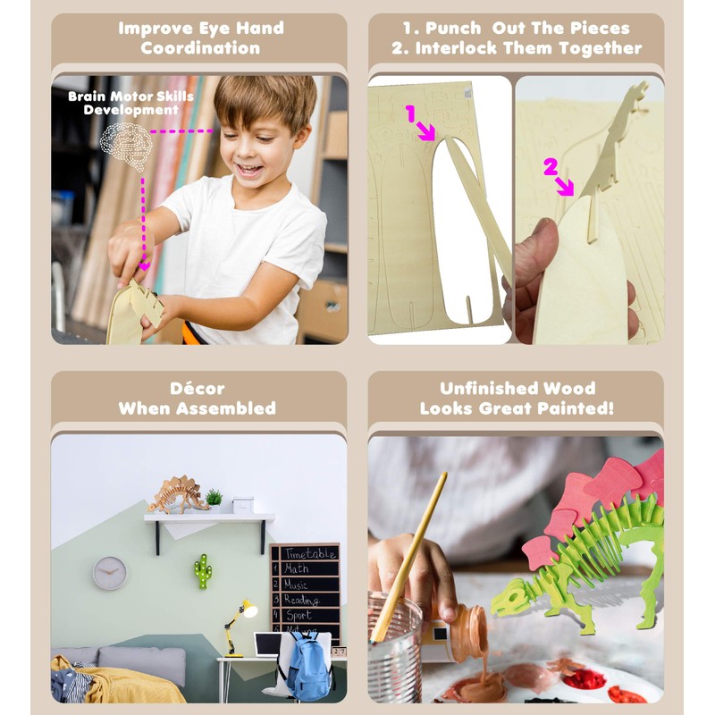 - IDEAL USE FOR THE STEGOSAURUS WOOD KIT 3D MODEL PUZZLE - Challenge yourself & your loved ones to building this DIY cut 3-D puzzle. Display your achievement as artwork or play with your new model toy. 3D puzzles woodcraft construction kits help develop skills like eye coordination, problem-solving & shape recognition, while encouraging creativity. Customize your dinosaur diy toy kits! Paint it for school projects or make it a game for friends & family to enjoy while passing quality time together.