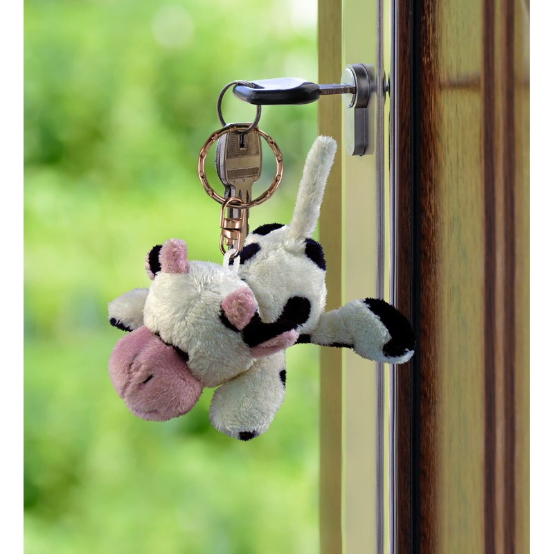 - IDEAL USE FOR STUFFED COW PLUSH ANIMAL TOY - The cow will make a great addition to kids plush collection and adult couples can express their love by surprising their better half with a unique plush accessory. You can now accessorize your totes, handbags and backpacks, or even your mobile phone with this adorable and cushy stuffed animal key holder. The stuffed cow will be your child's huggable plush buddy when playing, traveling, and learning.
