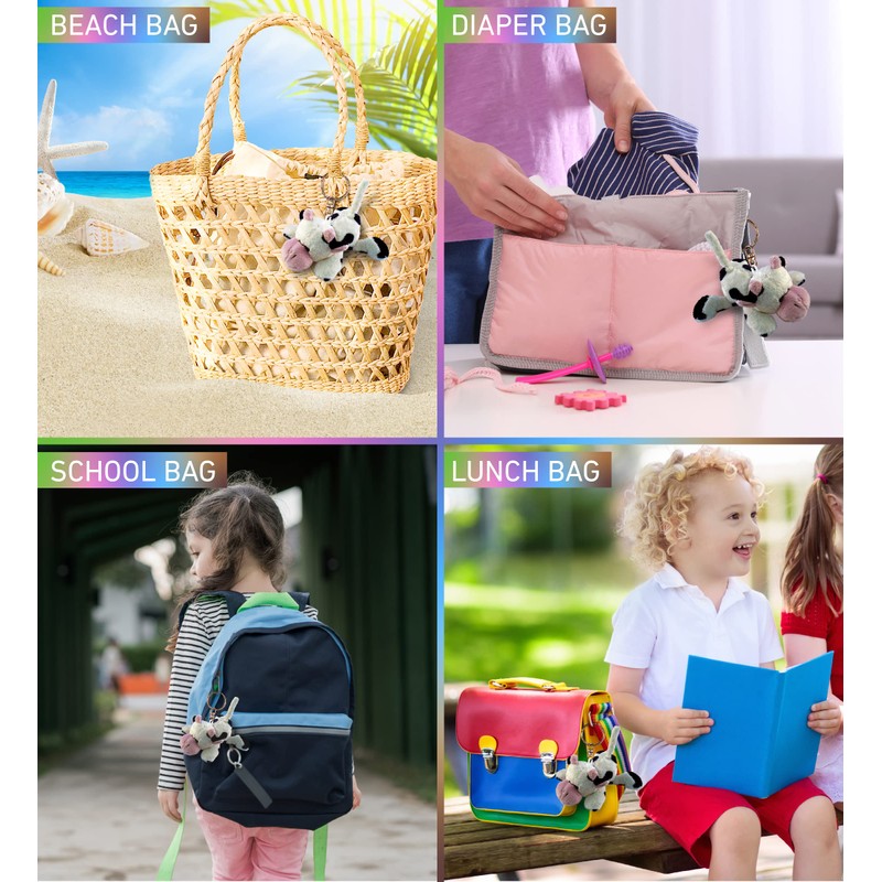 - THE STUFFED ANIMAL KEYCHAIN COW COMES WITH UNIQUE DESIGN YOU WILL LOVE – Have an exciting imaginary play with your little one and his cute cow plush toy keychain. Puzzled cow keychain will surely bring a smile to your loved ones who love wildlife animals. Cow stuffed keychain plush buddy is not only decorative but also useful and functional. It can fit many keys, can be used to secure to any bag, purse, or backpack, and is a great travel buddy.
