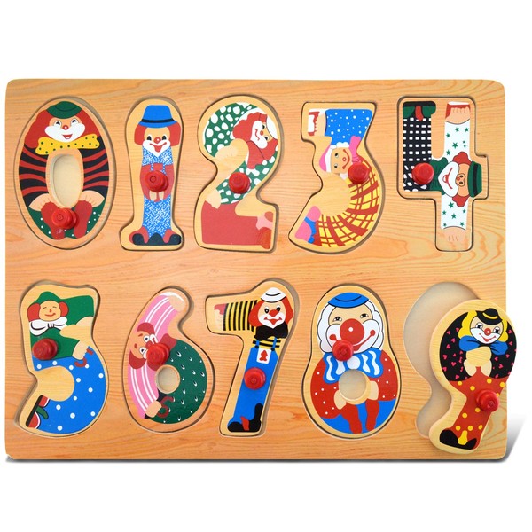 • INCLUDED WITH THE PURCHASE OF PEG WOODEN PUZZLE FOR KIDS - 1 Puzzled Numbers Peg Puzzle with 10 removable numbers puzzle pieces & a square puzzle board tray, designed with colorful clown characters. With the numbers peg puzzle, your child will meet a funny bunch of circus clowns smiling, standing in funny poses and wearing colorful clothes. The numbers peg puzzle measures about 11.37″L x 8.62″W inches, perfect for children's little hands.