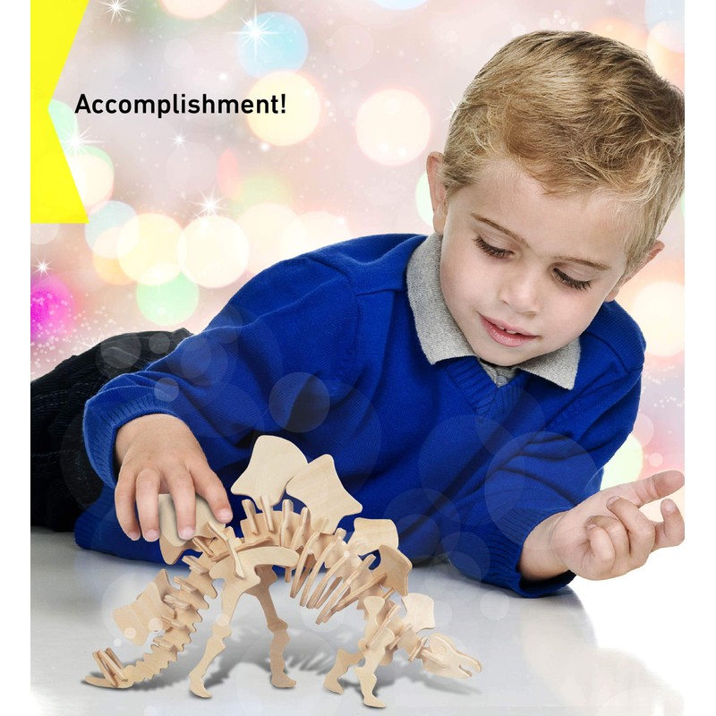 - INTERACTIVE TOY PUZZLE – Turn your kids bedroom into a work of arts and crafts with this Stegosaurus 3D Wooden Puzzle that includes 44 interlocking wooden pieces that are easy to put together. Portable 3d puzzles brain teaser that youngsters will enjoy playing indoor or outdoor. This puzzle toy can refrain your child from watching videos and playing games on your smartphone that will expose them to radiation that is bad for their health and tend to disconnect them to the real world.