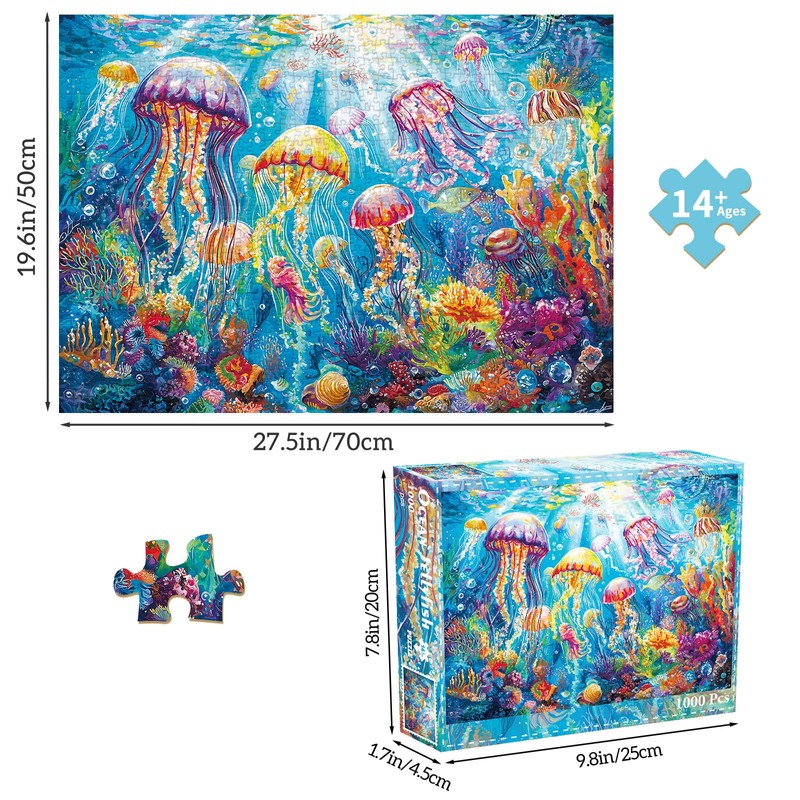 Puzzles 1000 Pieces for Adults jigsaw puzzles for adults 1000 Piece Puzzle Challenging Game for The Whole for Women, Gifts for Men, Theme:Ocean Jellyfish