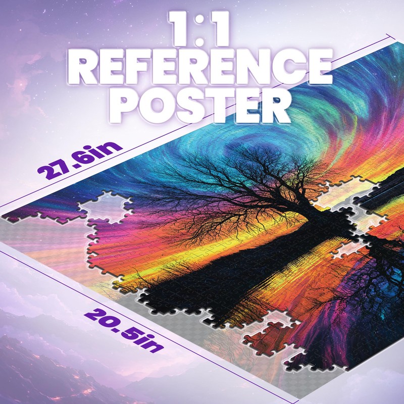 • Dreamy Symmetrical Beauty: This 1000-piece puzzle shows the fantasy scene of the tree of life surrounded by gorgeous aurora, and its reflection on the water surface forms perfect symmetry, creating a harmonious and peaceful visual enjoyment, allowing you to immerse yourself in the art of beauty during the puzzle process.
