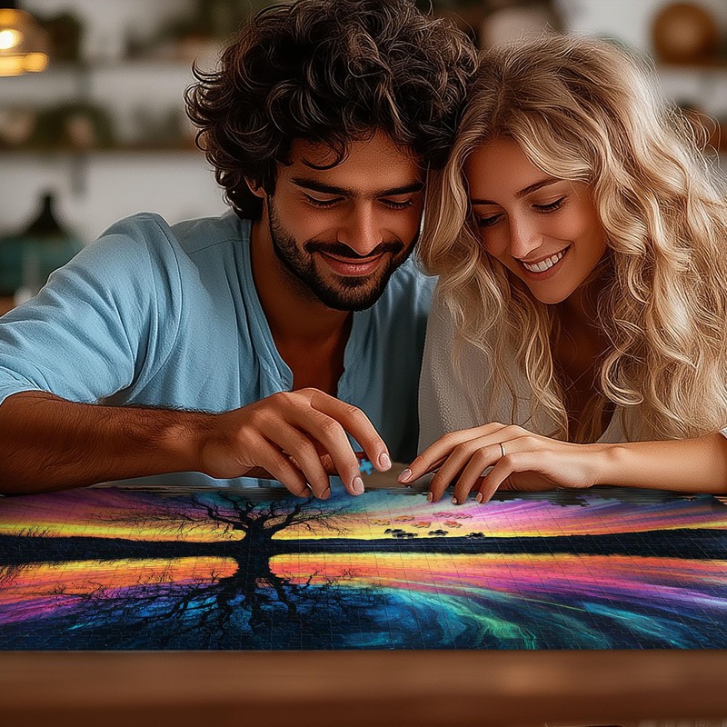 Transform your leisure time into a captivating journey with this stunning 1000-piece jigsaw puzzle featuring a mesmerizing rainbow tree reflection design. Measuring 27.6 x 20.5 inches, this puzzle presents a beautiful challenge that combines artistry with entertainment. The vibrant spectrum of colors dancing across the sky and reflecting in the water creates an enchanting scene that comes to life piece by piece. The puzzle includes helpful letters on the back to assist with sorting and assembly, making it an enjoyable experience for puzzle enthusiasts. Perfect for adults seeking a mindful activity, this puzzle offers hours of engaging entertainment while helping to sharpen focus and problem-solving skills. It's an ideal choice for family game nights, providing a wonderful opportunity for quality time and collaborative achievement. The striking imagery and satisfying complexity make it a delightful addition to any puzzle collection. Whether you're a seasoned puzzler or looking for a new hobby, this rainbow tree puzzle offers the perfect balance of challenge and enjoyment.