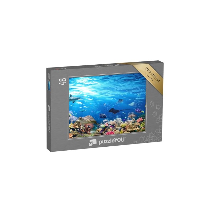 puzzleYOU: 48 Piece Underwater Scene with Coral Reef, Fish, Sharks, Turtle and Manta Puzzle Collection Underwater