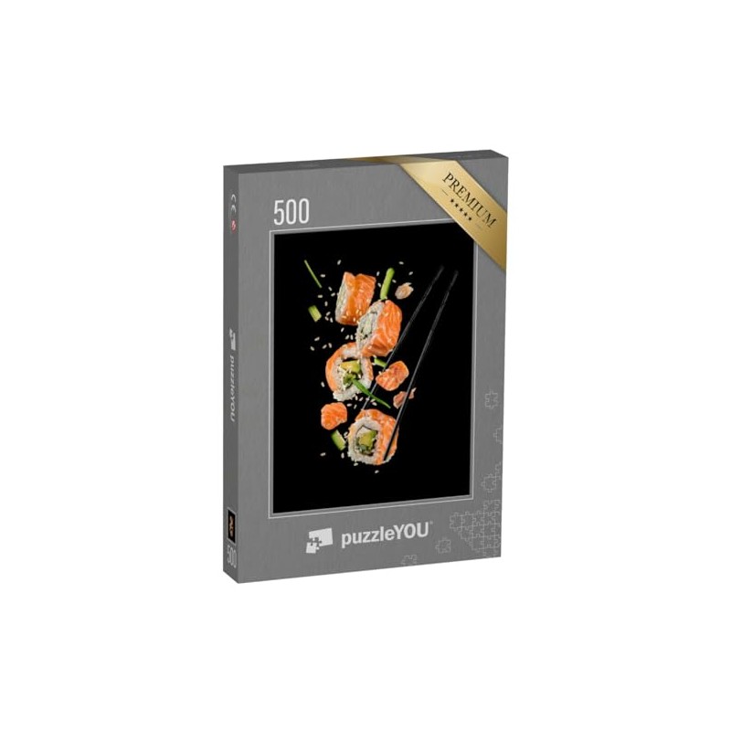 puzzleYOU: 500 Piece Jigsaw Puzzle "Sushi Rollers Between Sticks, Black Background, Very High Resolution"