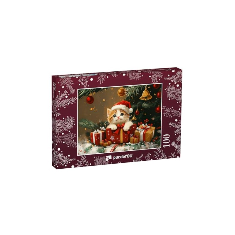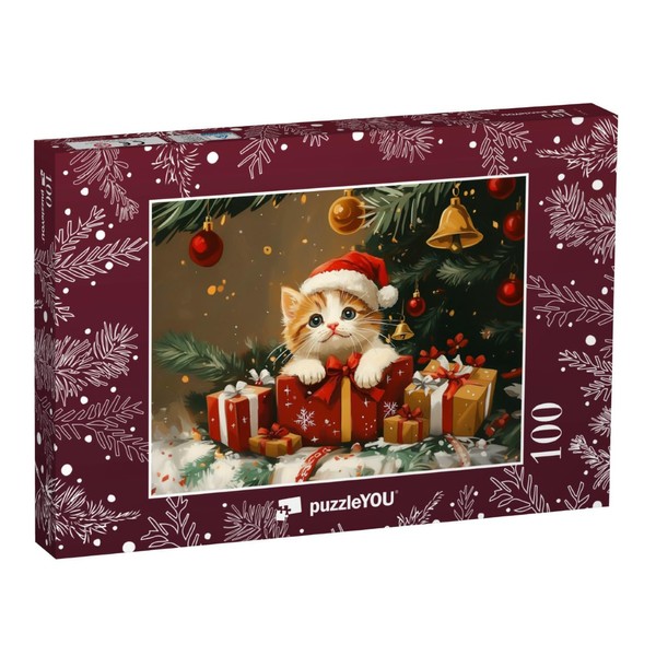 puzzleYOU: Puzzle 100 Teile „Kätzchen Kira im Geschenkkarton“
