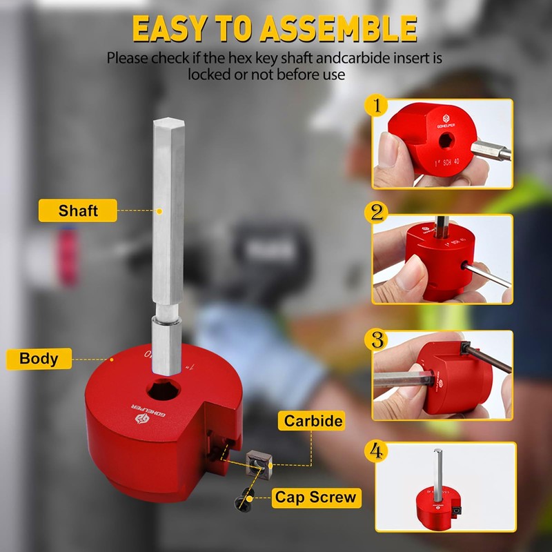 - Note: It is recommended to use a variable-speed electric drill with low-speed cutting; Appropriately add water for cooling to prevent the pipeline from melting at high temperature,Check if the hex key shaft is locked or not before use. Warm tips: CN,US,EU Patent Pending.
