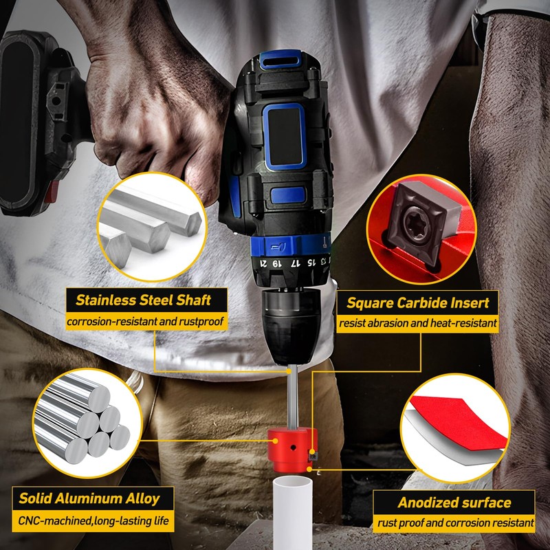 PVC Fitting Saver with 1 Inch Head Aluminum, PVC Pipe Reamer, PVC Socket Saver with 0.236" Hex Shaft, For Water Lines, Drain Lines, Vent Lines