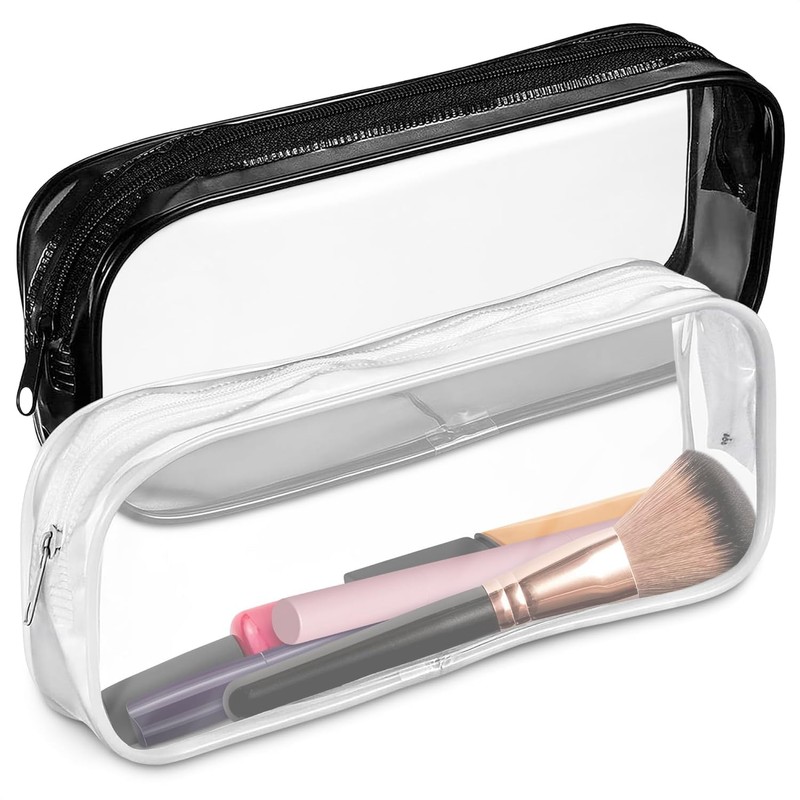 PVC Zipper Bag Makeup Bag Plastic Transparent Makeup Bag 2-Piece Set (Black and White, 20 * 3.5 * 8cm)