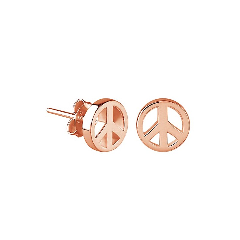 PVD Coated Rose Gold Sterling Silver XS Tiny Peace Stud Earrings