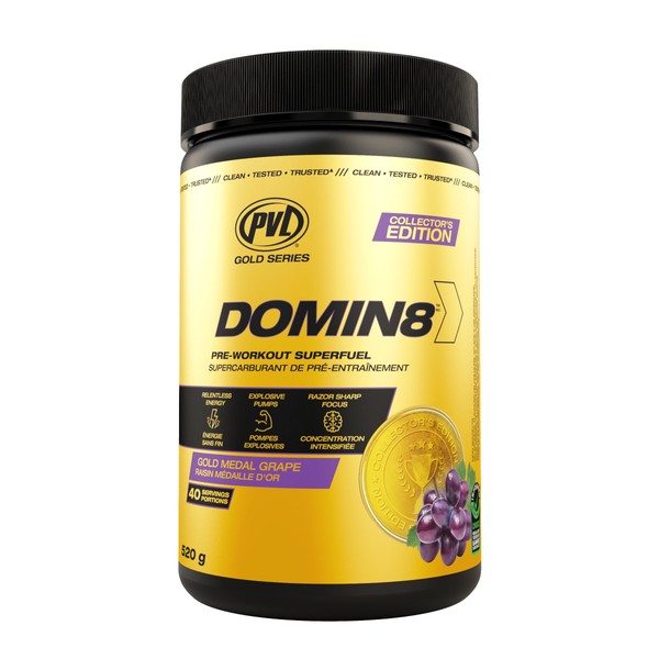 PVL Gold Series Domin8 | Pre-workout Superfuel - full dose Preworkout - 520 g - Gold Medal Grape