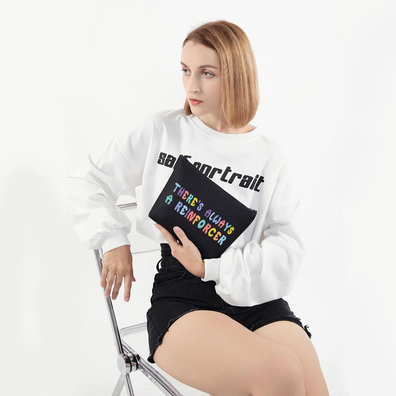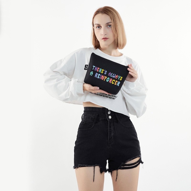 - The make up bag is: 100% polyester, black color pouch with black zipper.