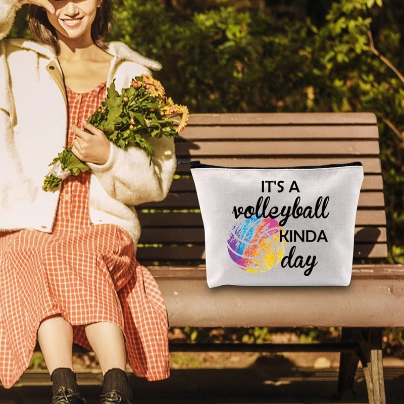 PWHAOO Bolsa de maquillaje para jugadores de voleibol It's A Voleyball Kinda Day bolsa de cosméticos de voleibol, regalo para el día del juego, voleibol KINDA día B