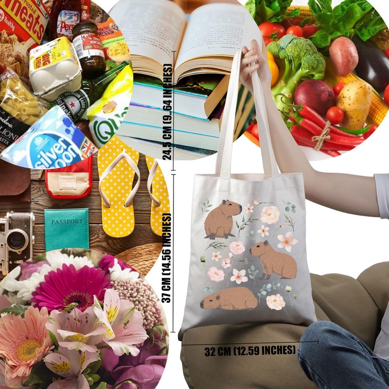 PWHAOO Capybara Lover Gift Capybara Design Tote Bag Capybara Fan Handbag Zoo Animal Lover Gift Zookeeper Gift (Capybara Design T C)