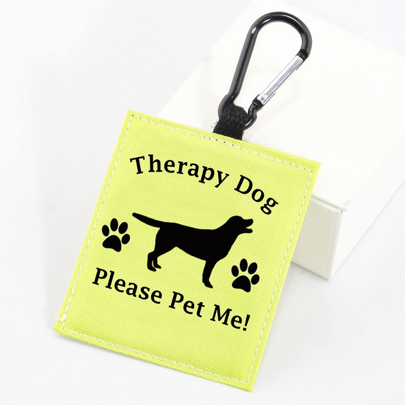 - Pack of 1 yellow patch, It reads: Therapy Dog Please Pet Me!