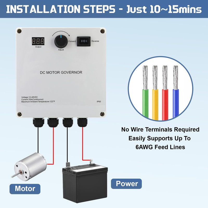 - 【EASY INSTALLATION & VERSATILE USE】Compatible with DC 12-48V voltage input and supports wire connections up to 6 AWG. It can be easily installed and connected directly without additional terminals, making it suitable for most DC brushed motors, including trolling boat motors, fans, and electric tools