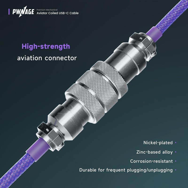 PWNAGE Coiled Aviator Cable – Nebula Purple – Detachable USB-C Mechanical Keyboard Cable with Double-Sleeved Paracord, Custom Coiled Design, Durable Metal Aviator Connector