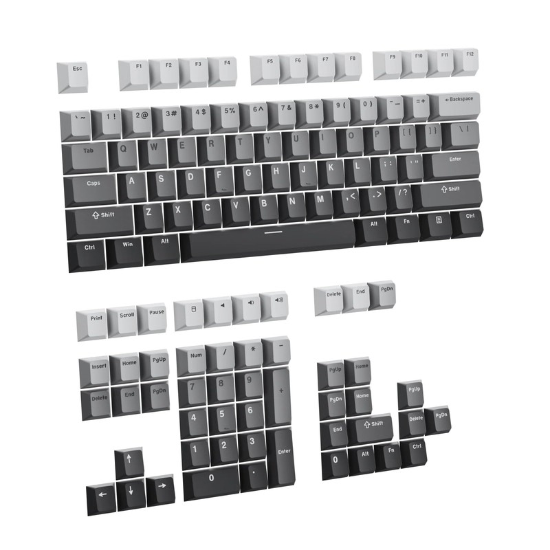 - US Layout. Extra set for total of 132 keys for universal size compatibility 60%, 65%, 68%, 75%, 80% and 100% Full size US layout mechanical keyboards