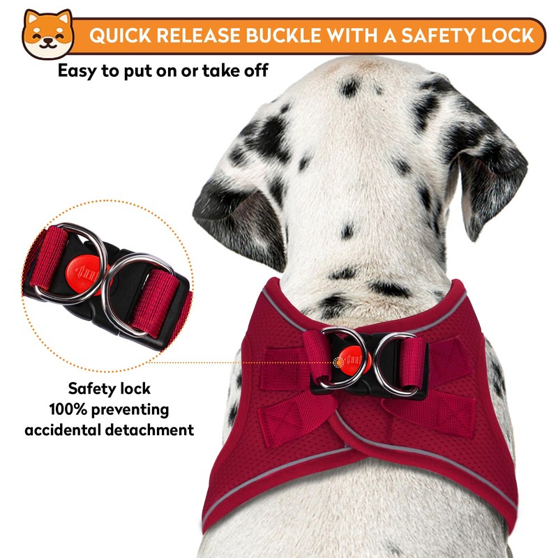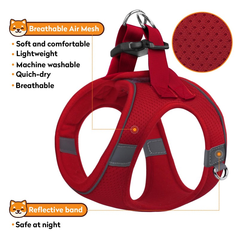 • Breathable -- This harness is made of high density soft Air-mesh to protect your dog's skin, breathable, lightweight, comfortable, easy to clean and quick-dry. your baby dog will enjoy the daily walk in this comfort dog harness!